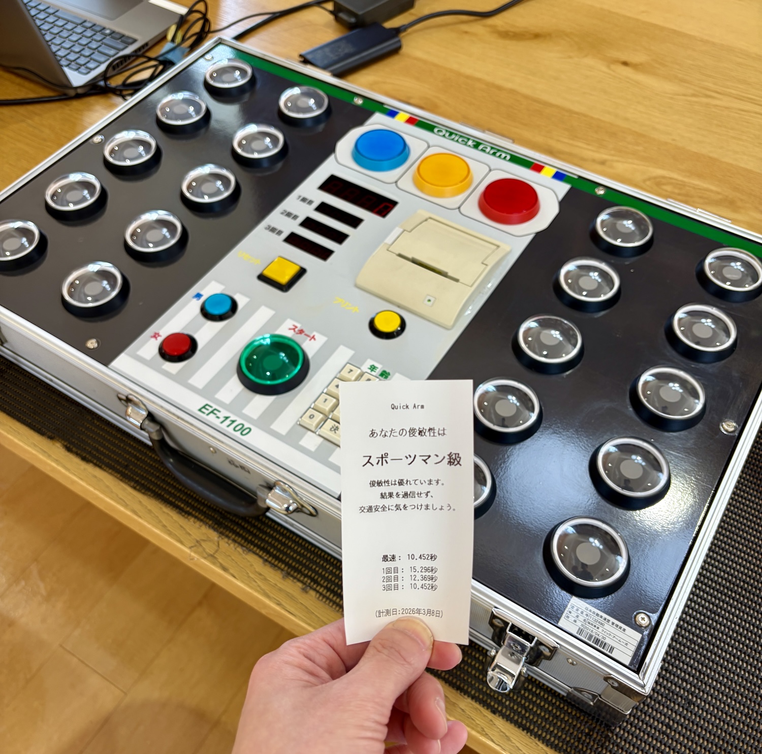 お隣でJAFさんが子供免許証の制作体験と、反射神経測定テストゲームもされてました!